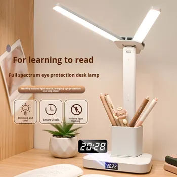 Lámpara de escritorio recargable para estudiantes de 1200mA, diseño plegable de gran capacidad, lectura de estudio de dormitorio, lámpara de protección ocular